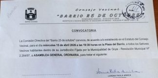 La Comisión Directiva del Barrio 25 de octubre" convoca, de acuerdo a lo establecido en el Estatuto del Consejo Vecinal, para el día miércoles 15 de abril 2026 a...