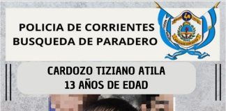 SOLICITUD DE COLABORACION PARA LA LOCALIZACION Y PARADERO DEL MENOR TIZIANO ATILA CARDOZO DE 13 AÑOS DE EDAD - A través de la presente Gacetilla, solicitamos a los distintos...