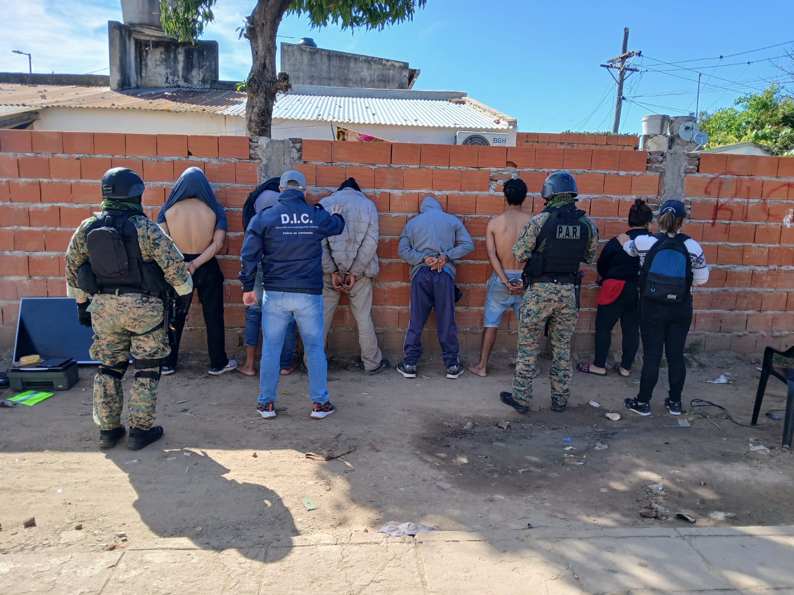 Los distintos trabajos de investigación desplegados, llevó a los efectivos a diligenciar una orden de allanamiento, en un domicilio ubicado por calle Necochea al 2600 (zona de pasillos), lugar donde hallaron 63 dosis de sustancia blanquecina y 31 dosis de origen vegetal presumiblemente estupefaciente, elementos de corte, dinero en efectivo, teléfonos celulares, por lo cual solicitaron colaboración de personal de la Dirección de Drogas Peligrosas y Crimen Organizado, los cuales una vez en el lugar, y tras realizar el correspondiente test orientativo arrojo positivo para cocaína y marihuana respectivamente, así también cosas de dudosa procedencia televisor, impresora, equipo de música, garrafa, entre otras, en tanto, procedieron a la demora de una mujer y cinco hombres -mayores de edad-, quienes conforme a las primeras averiguaciones contarían con antecedentes policiales.
