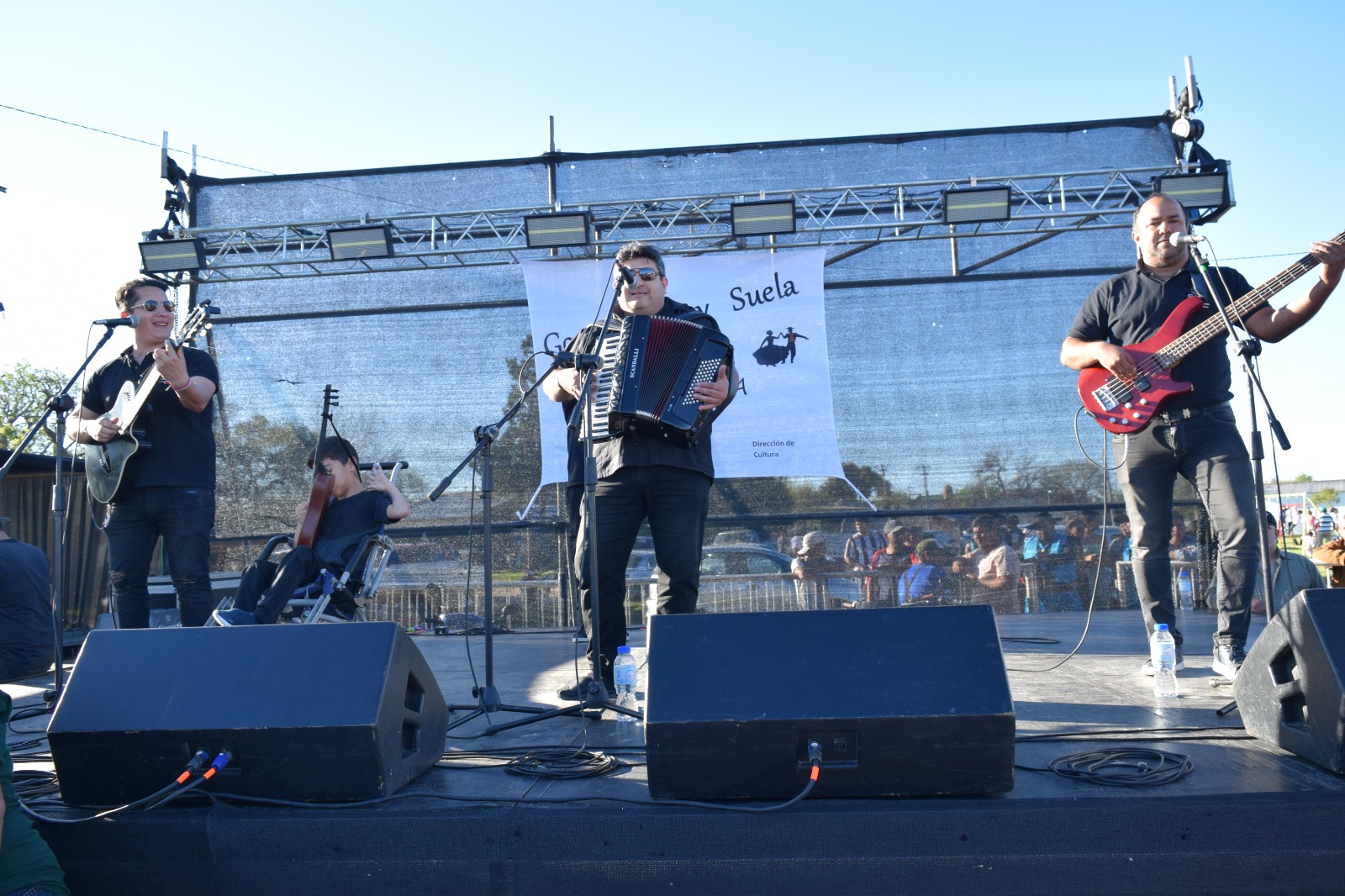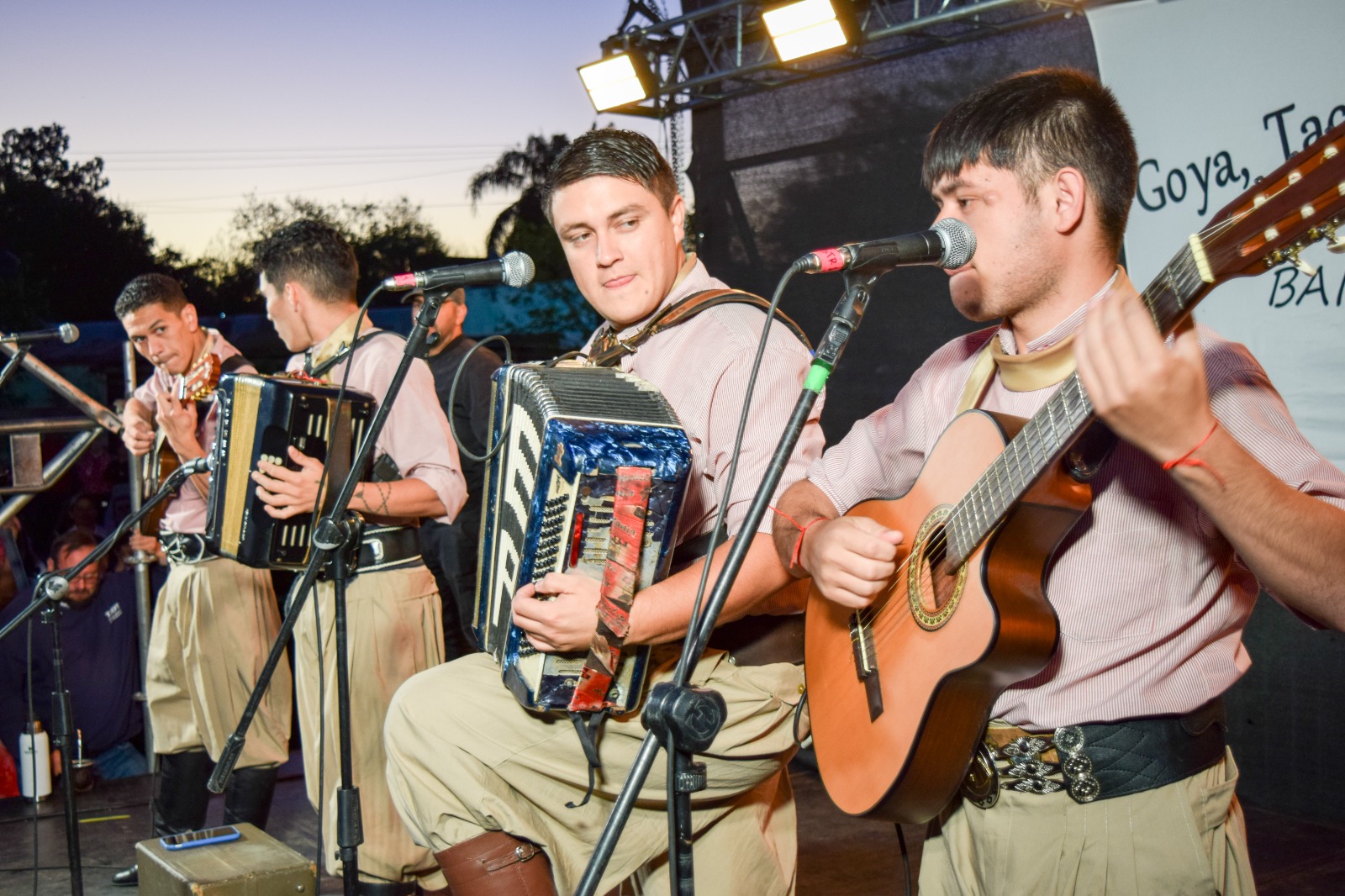 actuación del Grupo Chamamecero Oficial, adecuando un repertorio pensado para la bailanta.