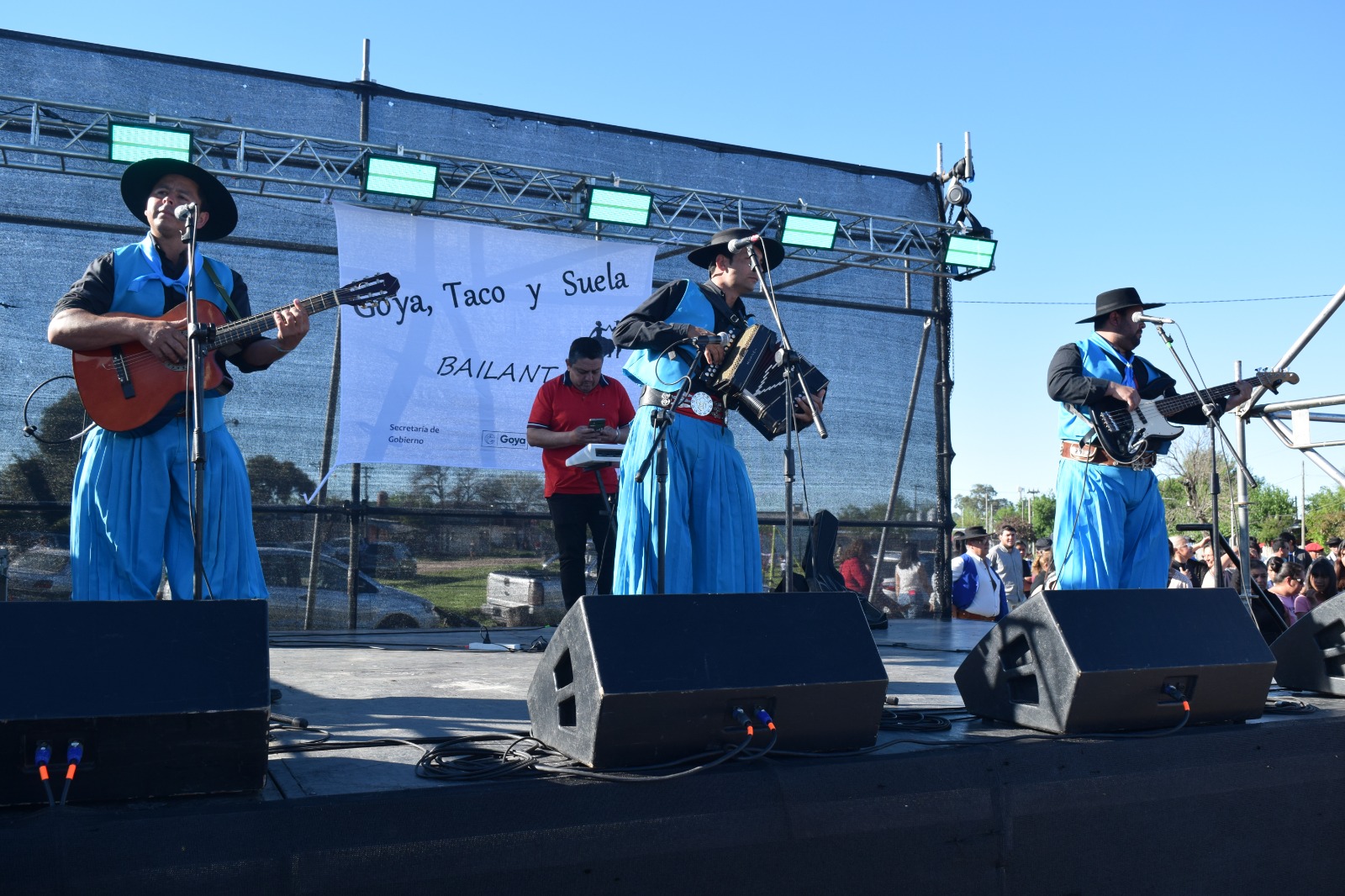 actuación del Grupo Chamamecero Oficial, adecuando un repertorio pensado para la bailanta.
