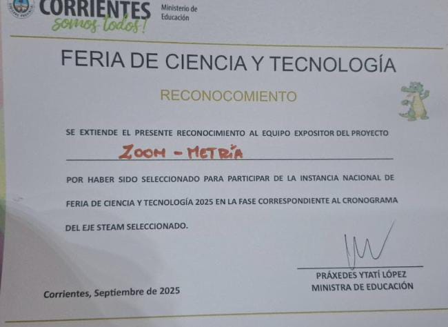 Dirección de Prensa – Goya continúa siendo noticia en el ámbito educativo. En esta oportunidad, la Escuela Primaria N° 254 “Dr. Pedro Alcántara Díaz Colodrero”, ubicada en el barrio Francisco Palau —popularmente conocida como la “escuela del asilo” por su cercanía al hogar de niños— logró un importante reconocimiento: sus alumnos clasificaron a la instancia nacional de la Feria de Ciencia y Tecnología 2025 con el proyecto “Zoom-Metría”. El certamen se realizará los días 1, 2 y 3 de octubre en la ciudad de Posadas, Misiones, y contará con representantes de todo el país.