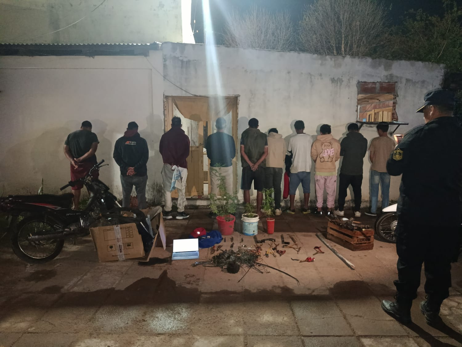blancas (machetes y Cuchillos de fabricación cacera), elementos punzo cortante, Ganzúas, Motos partes varias y motocicletas de origen dudoso, computadoras tipo notebook entre otros elementos., también procedieron a la detención de 8 personas de diversas edades, que estarían relacionadas con la banda conocida como “Arco Iris”