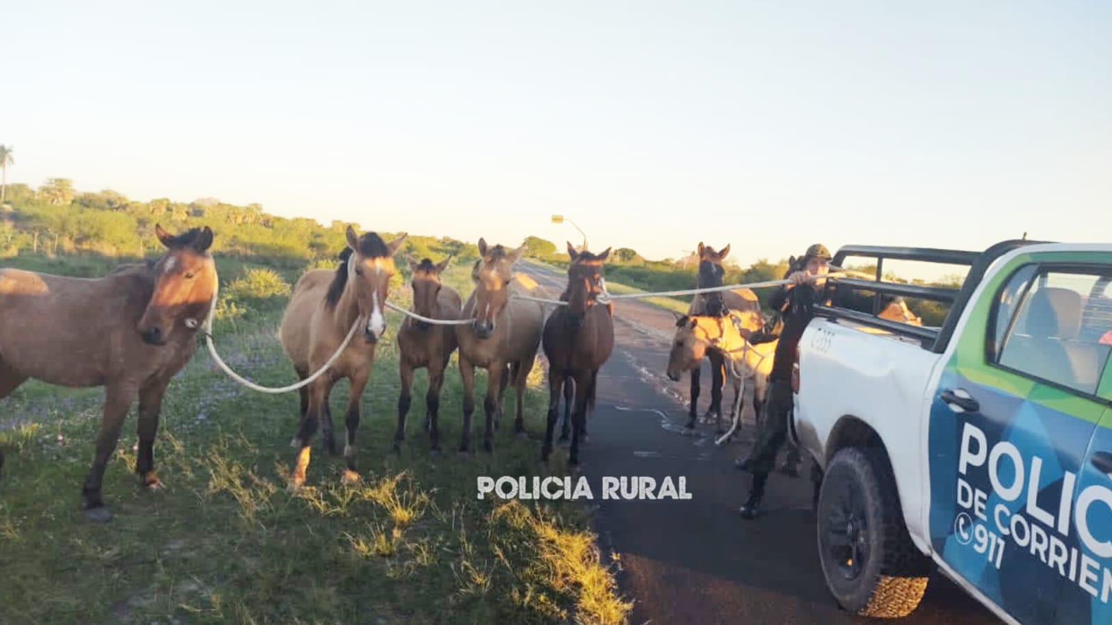 SAN LUIS DEL PALMAR – – Efectivos Policiales dependientes de la Unidad Especial de Seguridad Rural y Ecológica de San Luis del Palmar, en la tarde de ayer 22-09-25, cerca de las 18:00 horas, encontrándose sobre Ruta Provincial N°5 a la altura del kilómetro 28, divisan a varios a animales sueltos sobre la banquina.