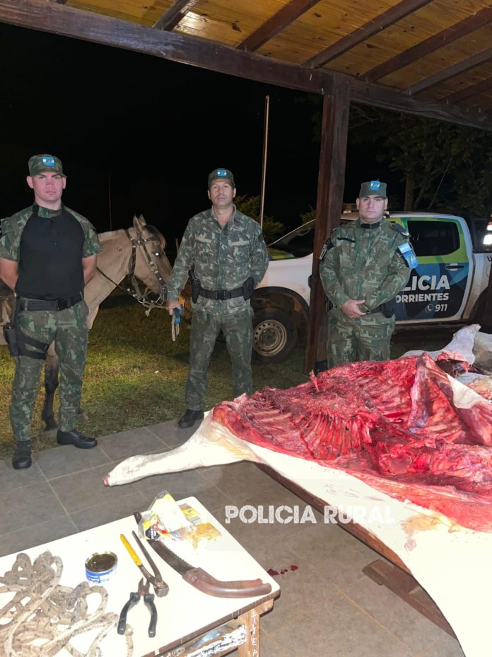 Por tal motivo, se procedió al secuestro preventivo de aperos, herramientas de faena y 270 kg de carne bovina, por lo que fueron puestos a disposición de la justicia y trasladados hasta la citada dependencia a fin de continuar con las diligencias del caso.