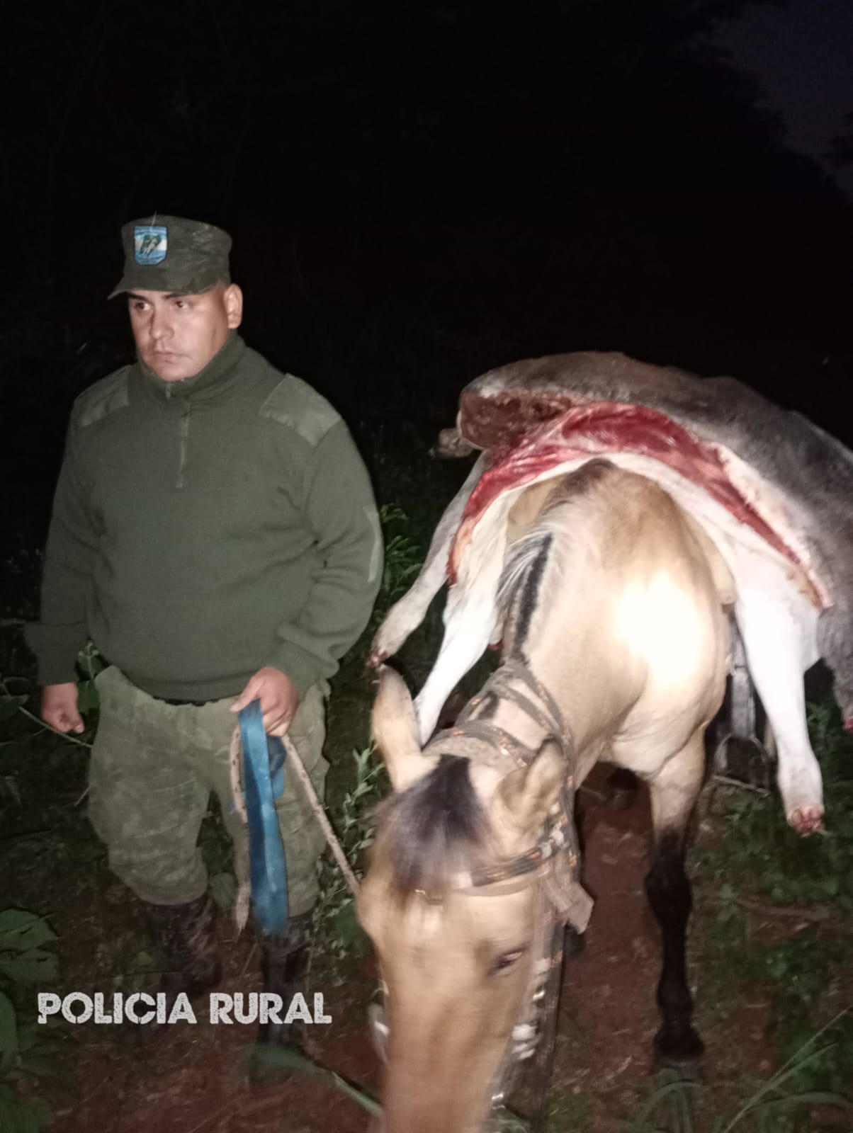 En la tarde DEL 20-10-25, personal policial dependientes de la Unidad Especial de Seguridad Rural y Ecológica de Desiderio Sosa, momentos en que realizaban recorridas de prevención de ilícitos, lograron el secuestro de aperos, herramientas de faena y carne de animal bovino recientemente faenado, aparentemente de forma ilegal.