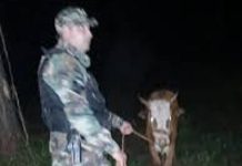 El procedimiento, lo efectuaron los mencionados efectivos en una zona rural, oportunidad en que observaron a dos personas cargando restos de animal vacunos y quienes al notar la presencia policial emprenden su huida efectuando disparos con arma de fuego hacia los uniformados, arrojado además varios elementos.
