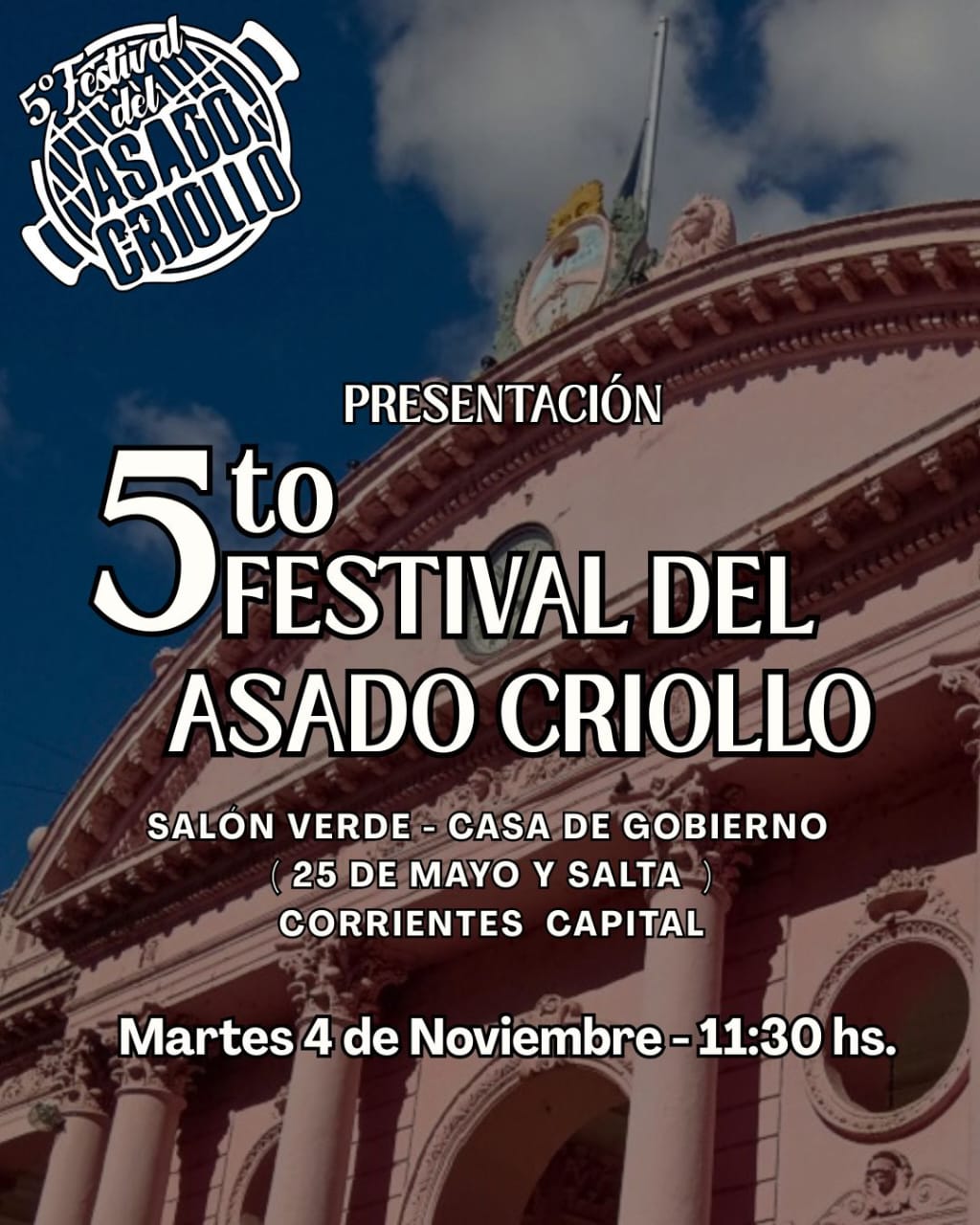 Este martes 4 de noviembre a las 11:30 horas tendrá lugar en Salón Verde de Casa de Gobierno, en la capital correntina, el lanzamiento oficial de esta 5ª edición. Allí estarán presentando este Festival y Concurso, su organizador Gustavo Montepeloso, autoridades municipales y de Turismo de la provincia.