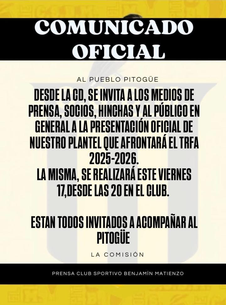 Asimismo, extienden la invitación a toda la familia matiencista: socios, hinchas, familias y al resto de las categorías, a acompañar dicho evento.