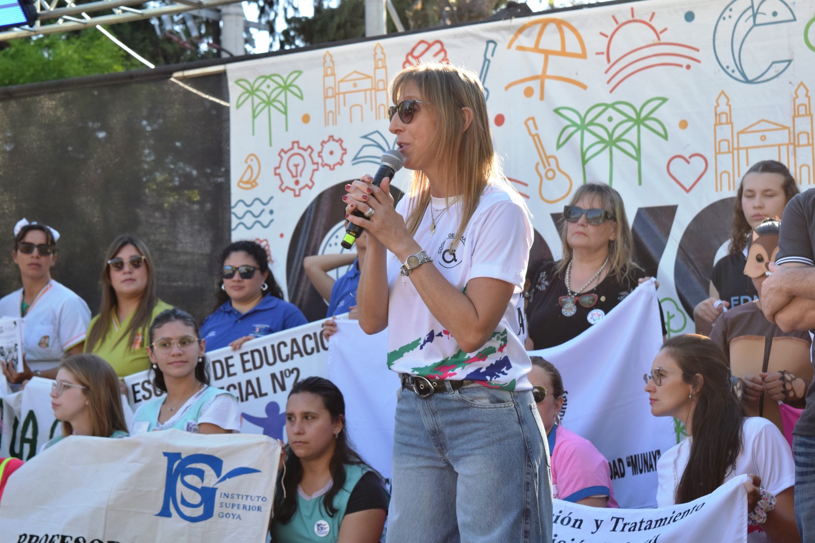 La Coordinadora de Discapacidad Liza Kamerichs, expresó su gratitud y reconocimiento a las instituciones educativas, centros terapéuticos, fundamentalmente al Intendente por acompañar y estar siempre ante cada requerimiento, para señalar: “Un año más que podemos convocarnos con las instituciones, centros terapéuticos, demostrando que estamos presentes, trabajando diariamente por la verdadera inclusión, para mejorar la calidad de vida, logrando dar pasos importantes, por esas acciones día a día, desde la gestión municipal gracias al equipo municipal, utilizaré una frase de Sonia (Espina) “Gracias Mariano por comprender”; si gracias por estar, por responder a cada demanda, a cada solicitud, por eso agradecemos junto a las familias presentes, esto emociona y nos indica que estamos por el buen camino, del trabajo, del compromiso, la responsabilidad, de la honestidad, de estar junto a cada entidad para afianzar esta manera de trabajar juntos, de manera articulada.”