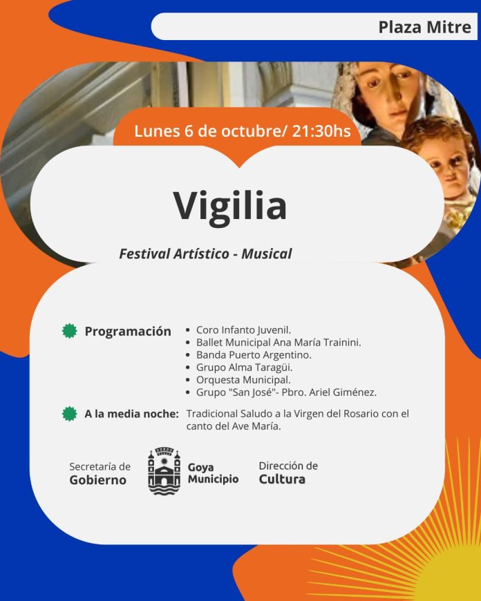 La ciudadanía de Goya se apresta a rendirle honores a su Patrona: la Virgen del Rosario y en la noche del lunes se realizará a partir de las 21,30 la tradicional vigilia esperando el saludo a Nuestra Madre.