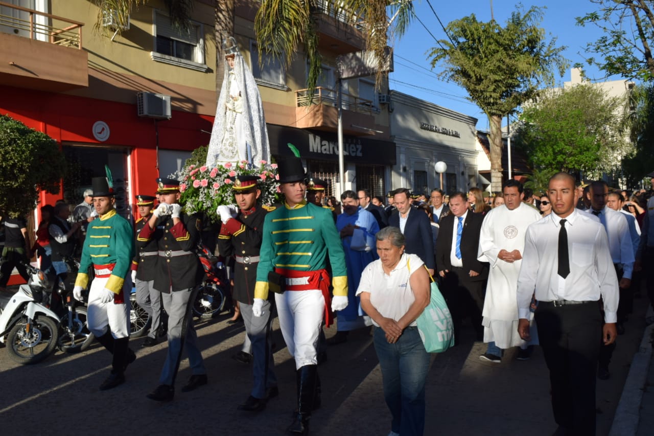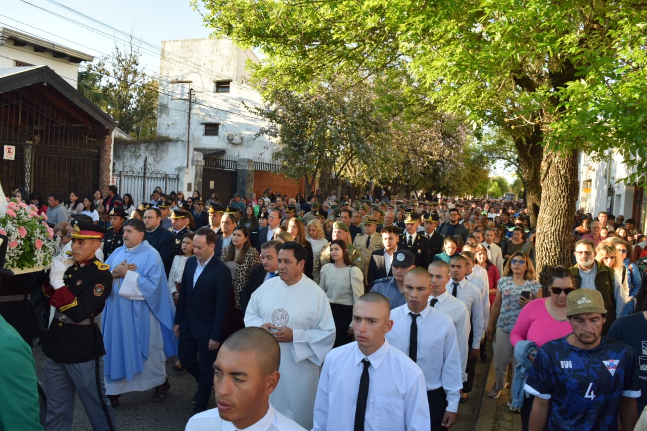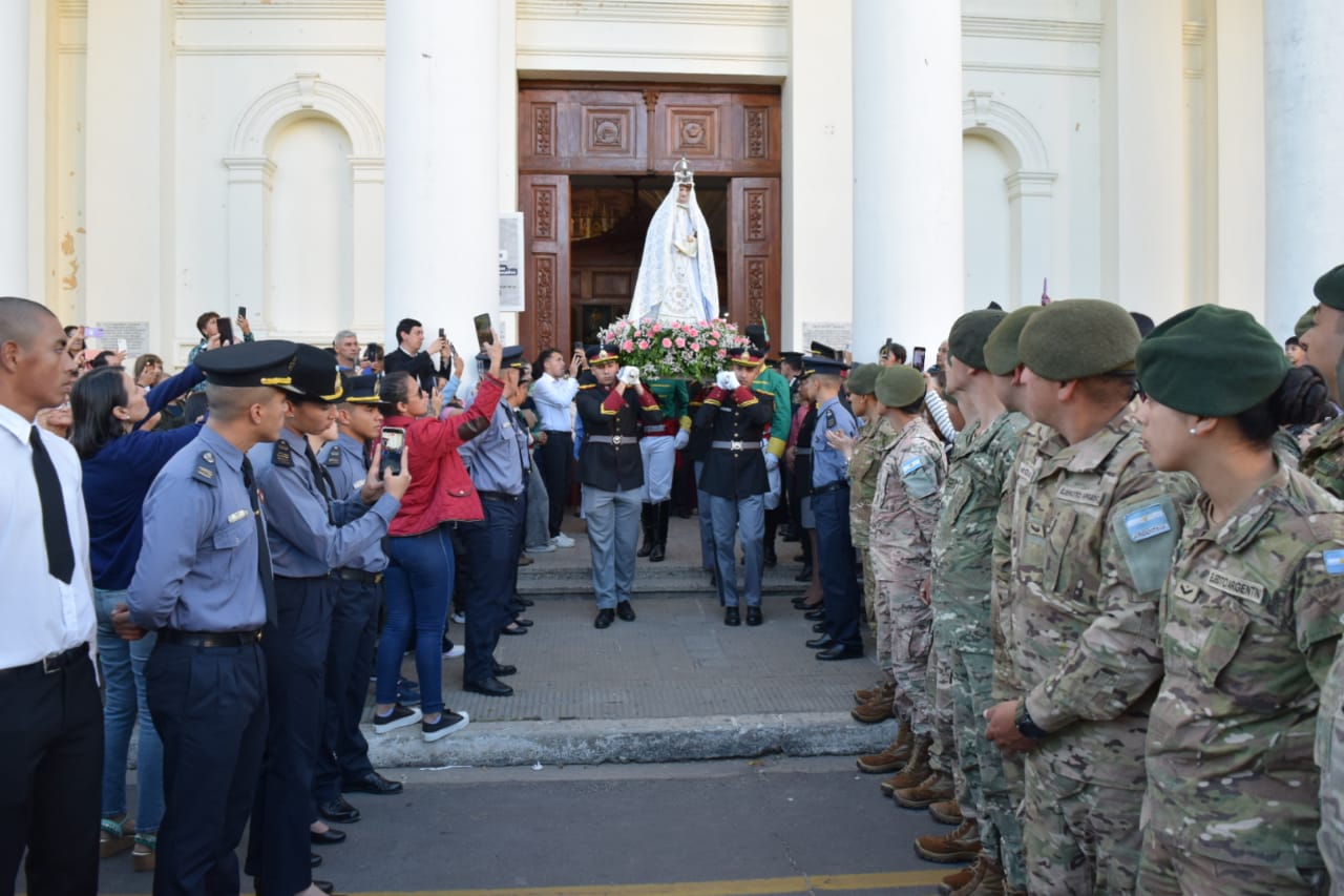Una vez concluida la parte artística, se ambientó el lugar para salir en procesión junto a la Virgen del Rosario por las calles de la ciudad, para lo cual con una animación especial y la participación de la Banda Militar “Puerto Argentino” preparó a los fieles devotos con una recepción animada para la salida de la Patrona de Goya.