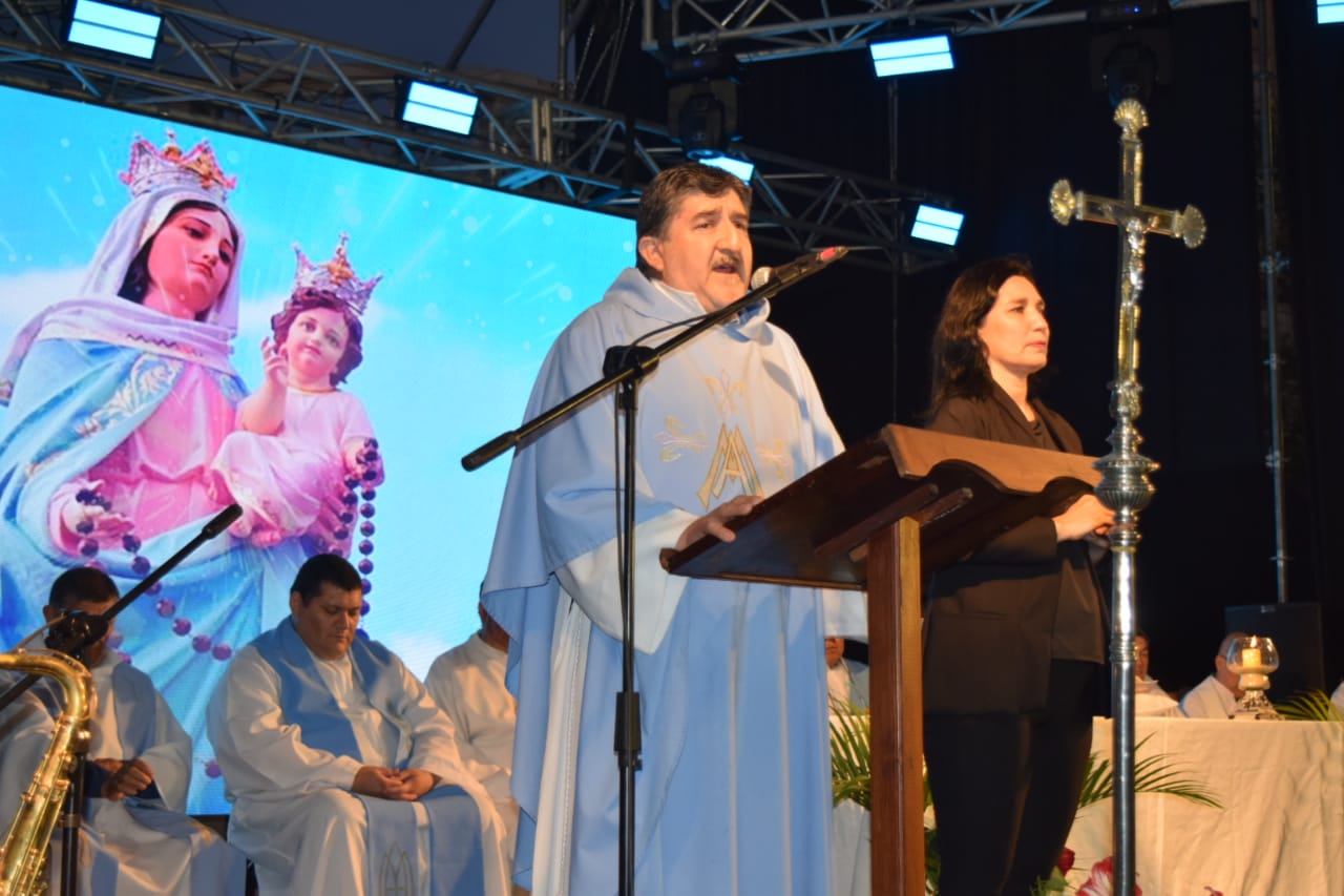 Para concluir el camino en el Altar preparado en el escenario frente a la Iglesia Catedral y celebrar la Misa, presidida por el Vicario General de la Diócesis padre Juan Carlos Mendoza, concelebrada por sacerdotes y diáconos de la Diócesis, participando del oficio religioso el Intendente Mariano Hormaechea, funcionarios municipales, concejales, integrantes de las Fuerzas armadas, de seguridad y el pueblo que se convocó a dar gracias y renovar la Fe en la Virgen del Rosario.