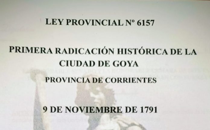 La historia de Goya, una de las ciudades más emblemáticas del sur correntino, se entrelaza con las aguas del río Paraná, las rutas del comercio colonial y las tradiciones de su gente. En 2012, la Legislatura de la Provincia de Corrientes sancionó la Ley N° 6157, que estableció como Primera Radicación Histórica de Goya el 9 de noviembre de 1791, fecha en la que aparece por primera vez mencionada la localidad en un documento público conservado en el Archivo Histórico de la Nación.