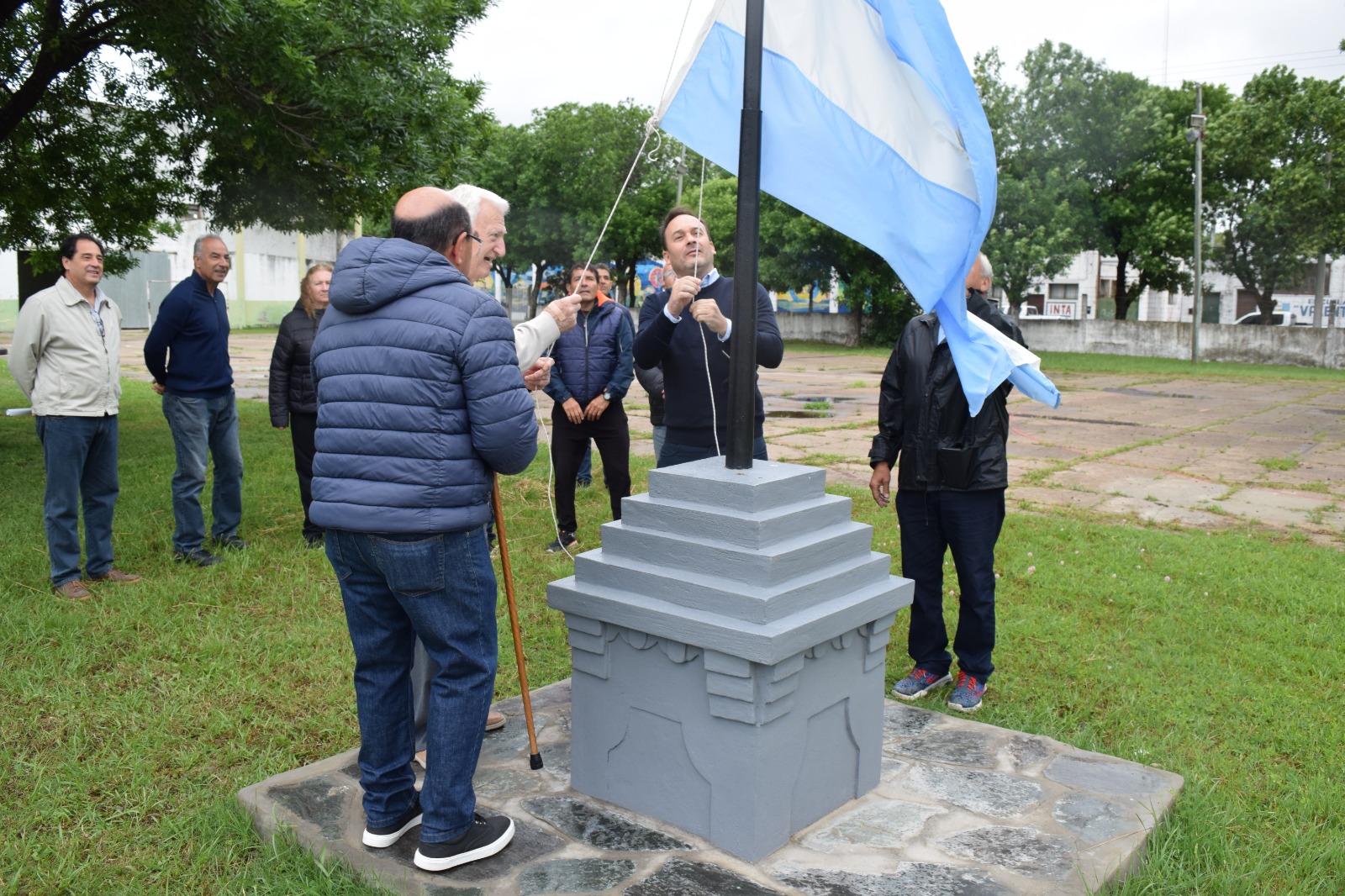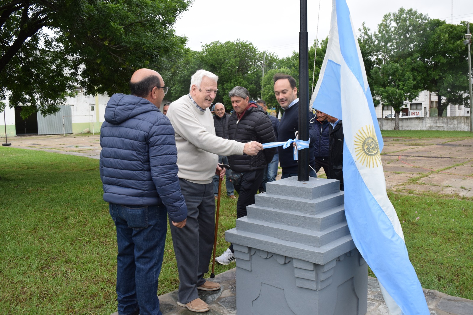 Los trabajos de construcción y colocación del nuevo mástil estuvieron a cargo de la Secretaría de Obras y Servicios Públicos, tarea que llevó adelante el operario Carlos Gómez, personal municipal del área mencionada, recibió un reconocimiento, como muestra del sincero agradecimiento del CPEF, la entrega a cargo del profesor Máximo Oviedo acompañado por el intendente Mariano Hormaechea.