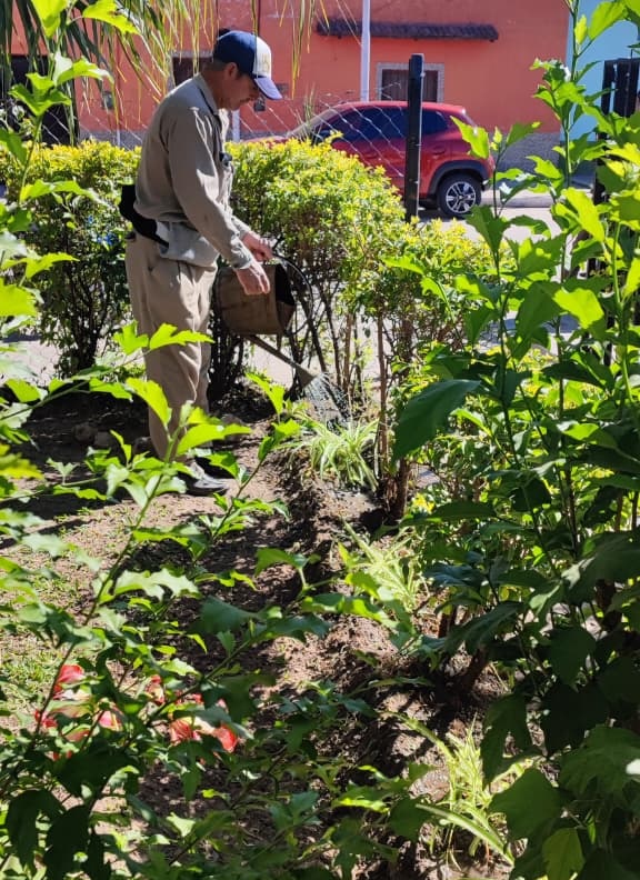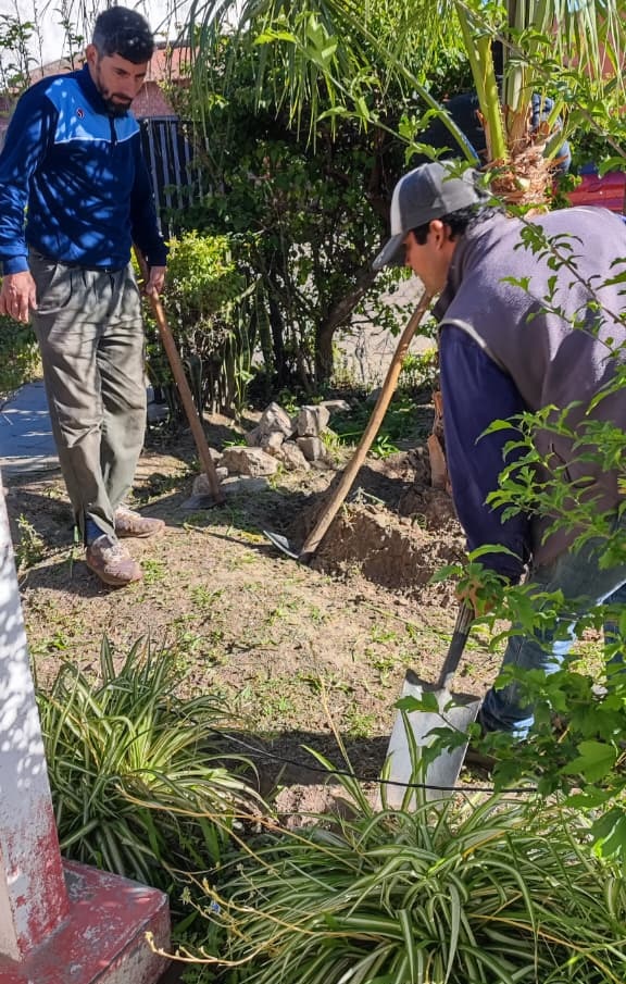 Personal del Vivero Municipal intervino en la Sala de Atención Primaria de la Salud del barrio San Ramón durante la jornada de este lunes.
