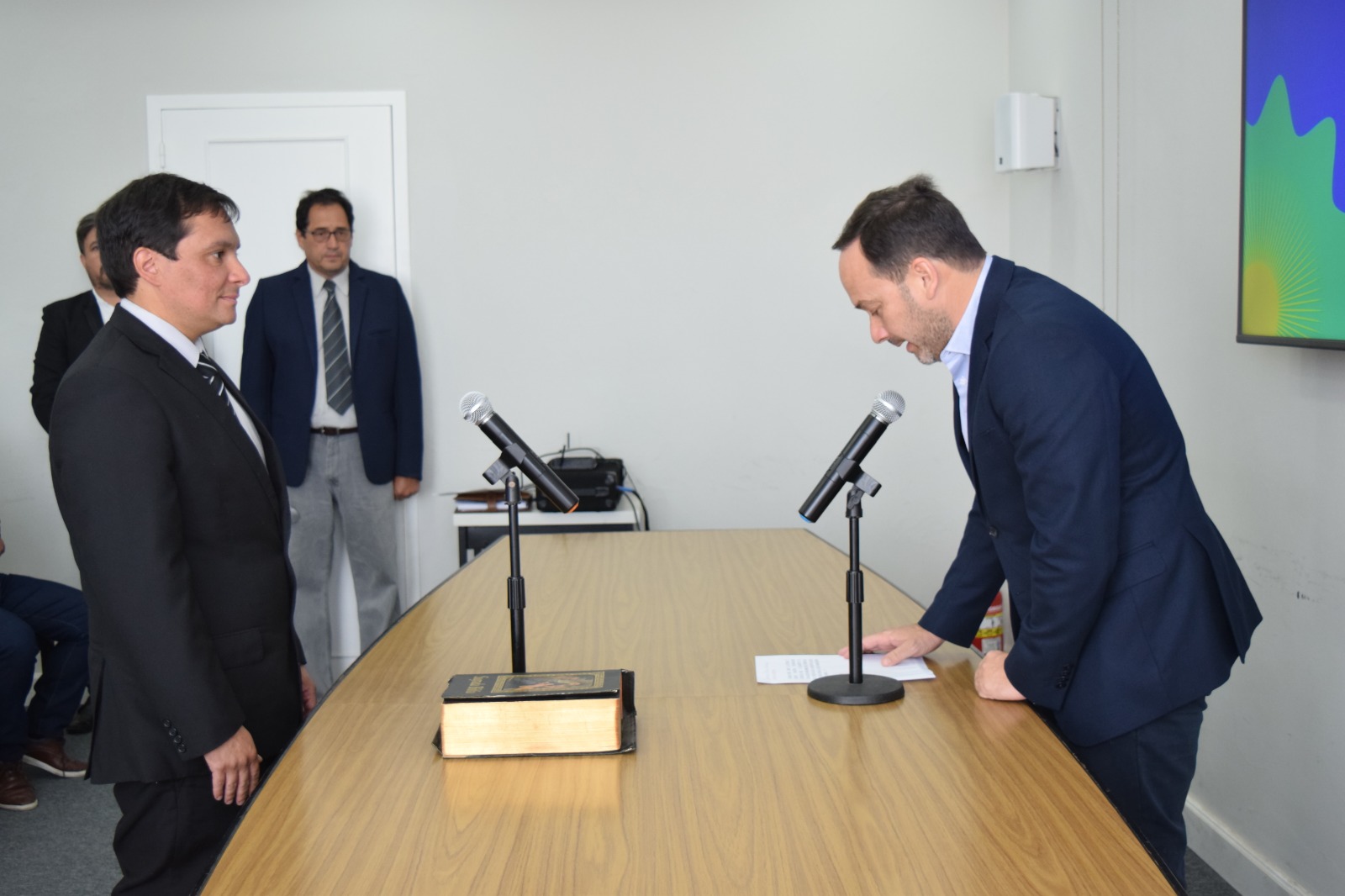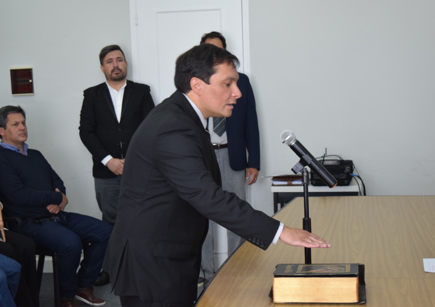 El intendente municipal Mariano Hormaechea tomó juramento al nuevo funcionario, en la mañana del lunes en el Salón de Acuerdos del edificio municipal.