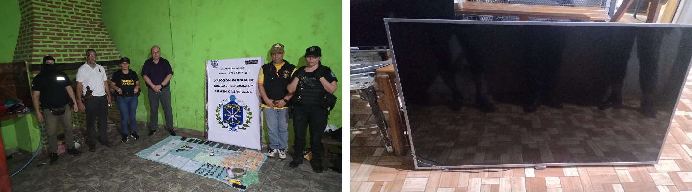 Los distintos mandatos judiciales fueron realizados en viviendas ubicadas en diferentes sectores del Barrio Dos de Abril de esta ciudad, en el cual hallaron dinero en efectivo, balanza de precisión, armas blancas, 15 proyectiles de calibre 22, electrodomésticos, una bicicleta, además, 67 “bochitas” y 9 trozos de una sustancia blanquecina compactada, para lo cual, se solicitó la colaboración de la Dirección General de Drogas Peligrosas y Crimen Organizado, quienes acudieron al lugar y realizaron el correspondiente test orientativo, el cual arrojó resultado positivo para cocaína de máxima pureza, de un peso aproximado de 788 gramos, lo cual fue secuestrado bajo las formalidades legales junto a las demás cosas. En el lugar se hicieron presentes el Jefe de Policía Crio. Gral. Lic. Miguel Ángel Leguizamón y el Sub Jefe de Policía Crio. Gral. Walter Darío Aceval quienes destacaron y felicitaron al personal policial por la labor realizada.