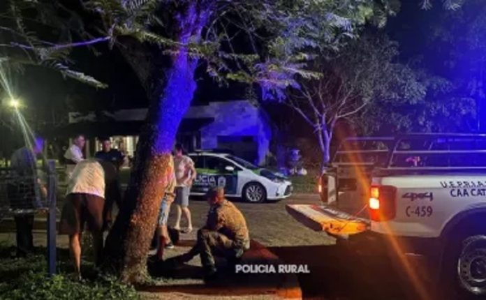 Por tal motivo de manera inmediata, los mencionados efectivos se constituyeron al lugar, donde se coordinó y solicito la colaboración con el equipo de rescate “Aguará Guazú”, procediendo así a la contención y rescate del animal, garantizando en todo momento la seguridad de los vecinos y del ejemplar.