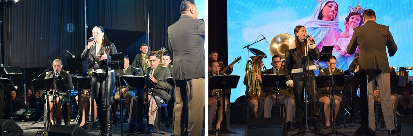 En la continuidad del festival, llegó el momento de la presentación de la Banda Militar “Puerto Argentino”, del Batallón de Ingeniero de Monte 12, bajo las batutas de sus maestros de banda, el Teniente Primero Alberto Esteban Córdoba y el Suboficial Mayor Ariel Callejas, con la particularidad de invitar a formar parte de su propuesta musical, a voces destacadas y músicos de nuestra ciudad, para interpretar temas del cancionero chamamecero, folclórico, baladas, incluidos ritmo tropical, luciéndose en cada uno de esos temas las voces de Brisa Díaz; Valeria Brito, Mariana Pozzer; Alejandra Moro; Jesica Ortiz; Ignacio Coronel, junto a músicos como Pablo Chamorro, “Kiki” Scagliotti y Franco Arévalo con el perfecto ensamble de los integrantes de la Banda Militar, sumando las voces del Sub Oficial Principal Sergio Pelozo y el Cabo Primero Emanuel Pérez, como muestra de agradecimiento la Banda hizo entrega a los artistas invitados de un reconocimiento por esa participación.