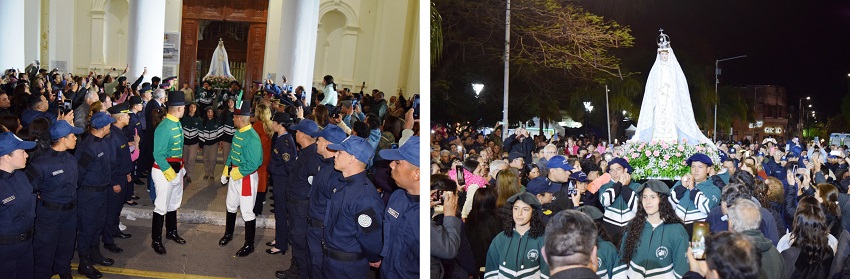 La Plaza Mitre como eje convocante de las autoridades municipales, Intendente, funcionarios, concejales, integrantes de las Fuerzas Armadas, de Seguridad y el público que supo aguardar la salida de la Virgen para recibir ese abrazo maternal, y recíprocamente poner en su corazón el agradecimiento de toda una comunidad.