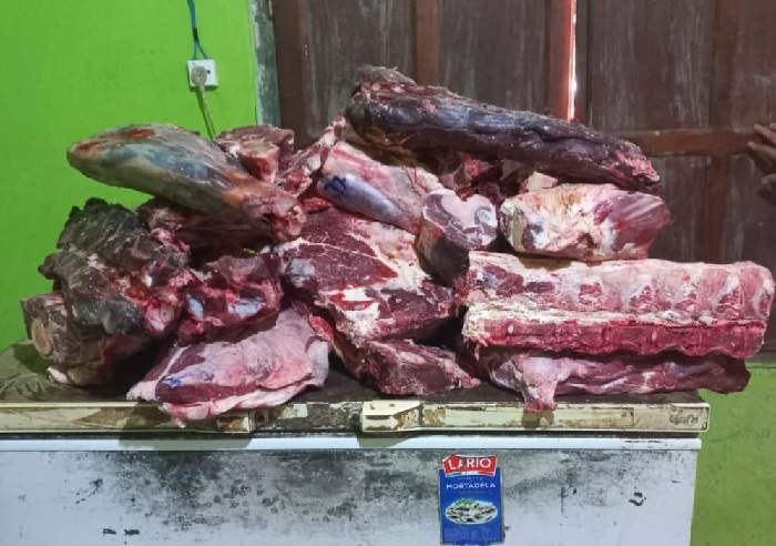 El mandato judicial fue realizado en un local comercial de la Cuarta Sección del Paraje Desmochado, lugar donde los citados efectivos, hallaron cueros vacunos y distintos cortes de carne, los cuales carecían de sellos bromatológicos y no poseían las medidas sanitarias estipuladas por las leyes y normas de salubridad, superando los 150 kilogramos, siendo secuestrados bajo las formalidades legales.