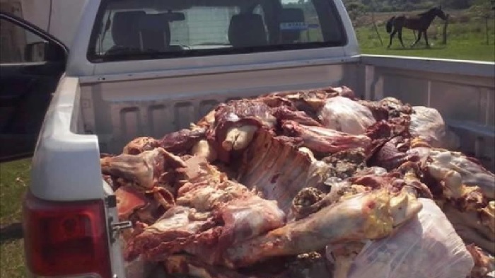 PRIAR- SAN ROQUE – La Policía secuestro cortes de carne, armas de fuego entre otros elementos, relacionados al ilícito de abigeato.