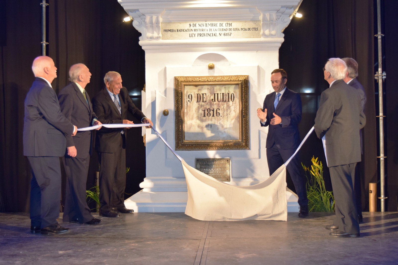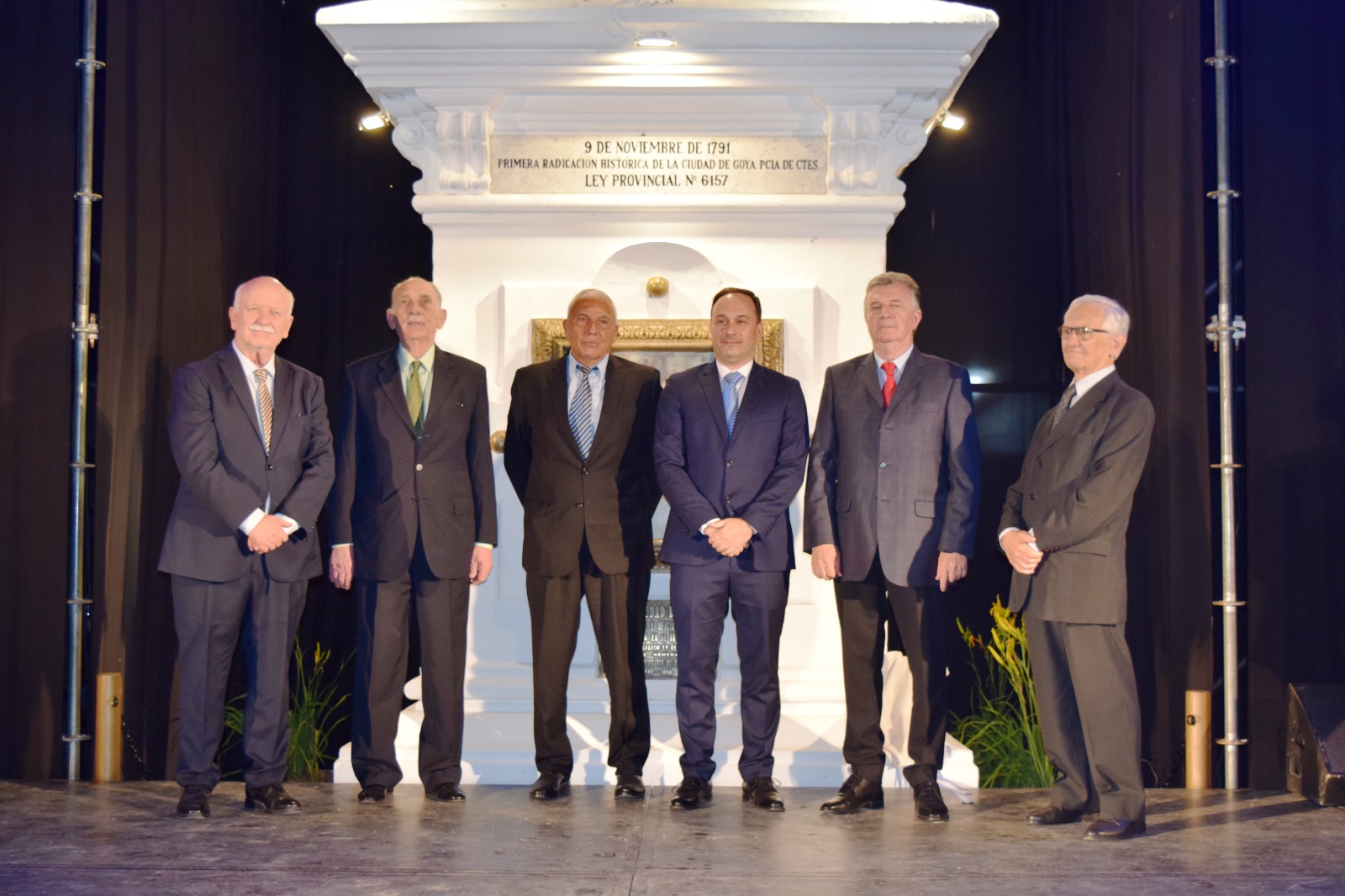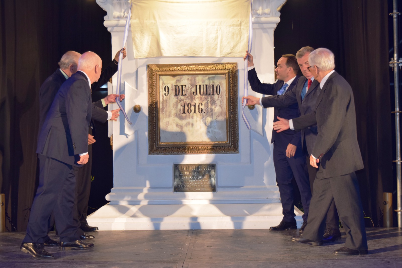 El Intendente Mariano Hormaechea junto a los ex intendentes elegidos democráticamente por los vecinos Alberto Difilippo, Ignacio Osella, Jorge Mazzaro, Gerardo Bassi como un símbolo de Unidad, continuidad institucional y amor compartido por Goya procedieron al descubrimiento de la placa recordatoria.