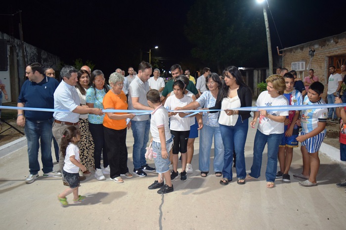 En la noche del jueves, el intendente Mariano Hormaechea presidió una nueva inauguración de cuadra de pavimento en hormigón armado, en el barrio Scófano, calle San Juan, entre Blas Luccioni y Juan XXIII.