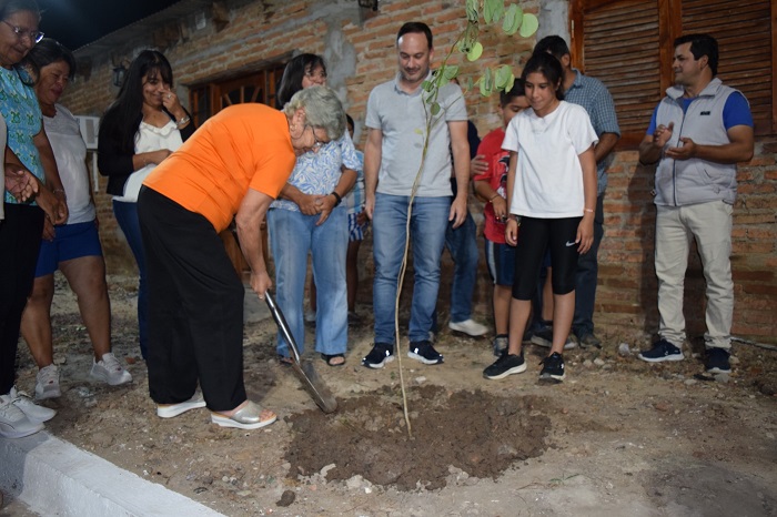 Como en cada inauguración se procede a la plantación de especies arbóreas provenientes del Vivero Municipal. En la ocasión el intendente Mariano Hormaechea junto a funcionarios y vecinos plantaron 26 árboles de la especie caoba.