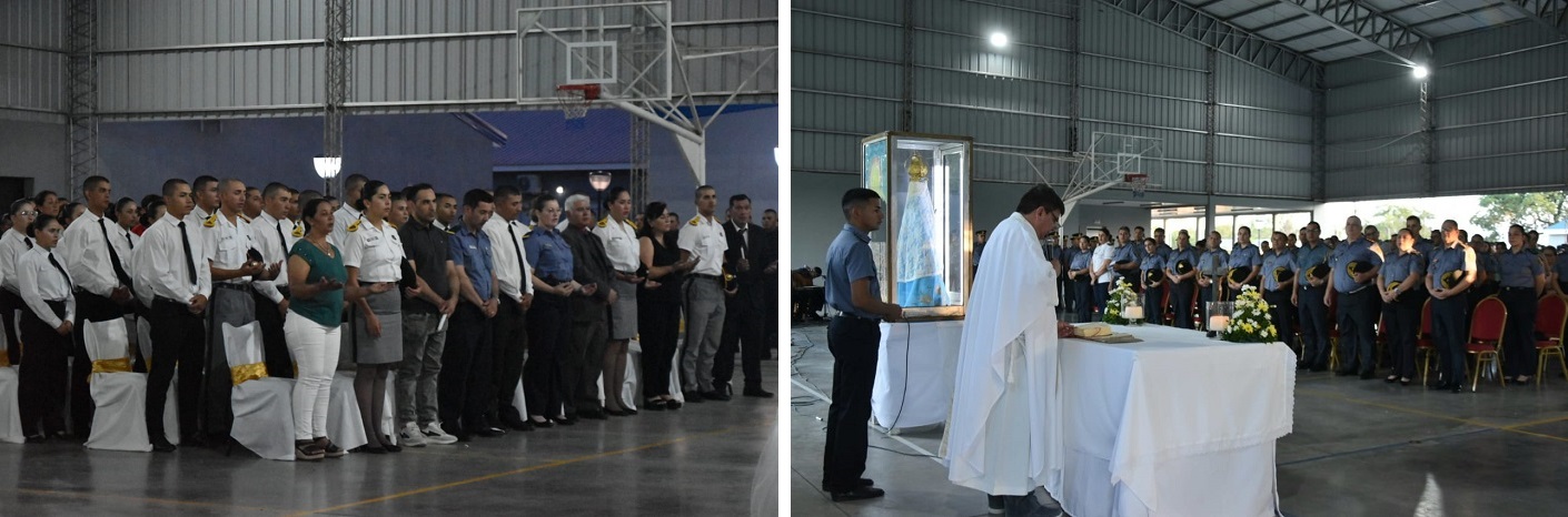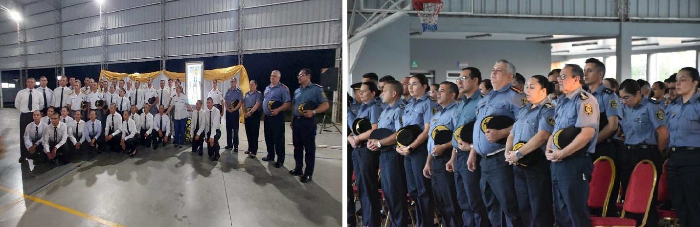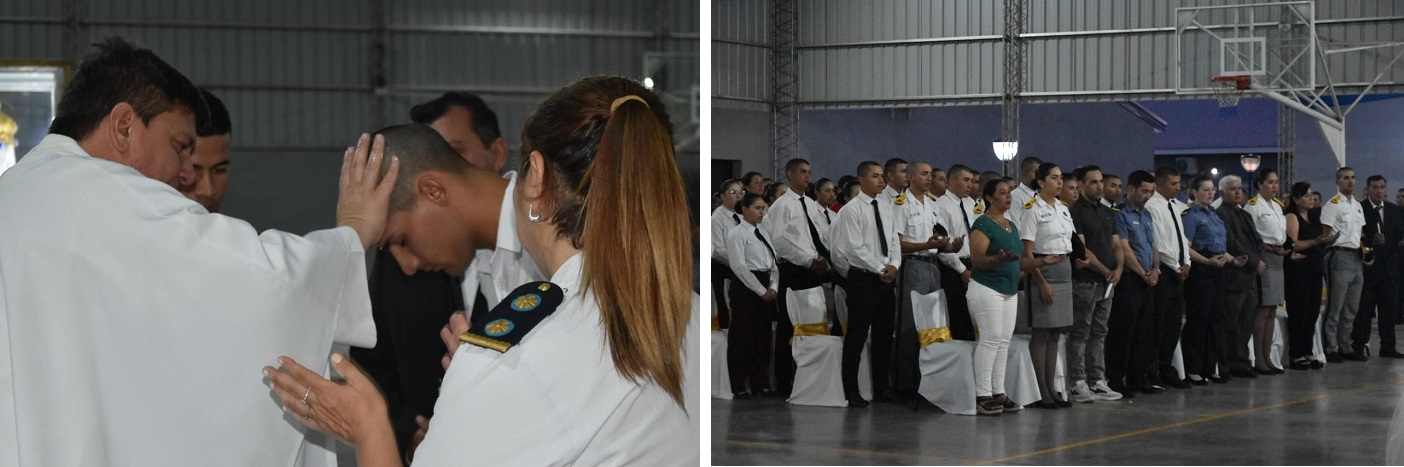 De la ceremonia participaron 09 cadetes de la Escuela de Policía y 27 aspirantes a cabo, quienes recibieron el Sacramento de la Primera Comunión, en tanto, otros 4 recibieron el sacramento del bautismo, además, estuvieron presentes, Directores Generales integrantes del Estado Mayor Policial, el Director de Instituto y Directores de ambas instituciones de formación, también, Personal Superior y Subalterno de la Institución Policial en actividad y en situación de retiro, cuerpo de cadetes y aspirantes de la escuela de cadetes y de Suboficiales.