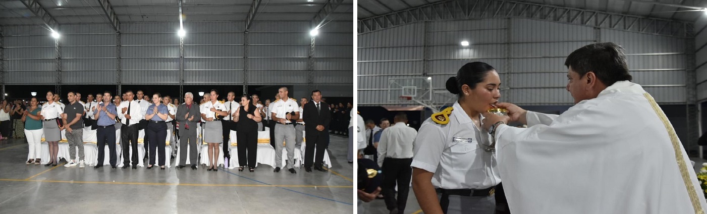 Cadetes y aspirantes recibieron los sacramentos del bautismo y primera comunión en una emotiva misa en acción de gracias.