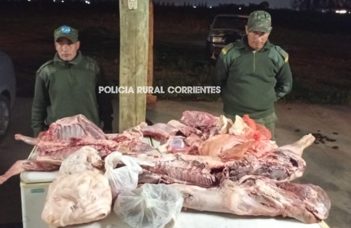 CURUZU CUATIA – La Policía tras diligenciar una orden de allanamiento, por un supuesto hecho de “abigeato”, hallaron y secuestraron producto cárnico, vacuno, porcino y ovino, freezer, cuchillos y una chaira.