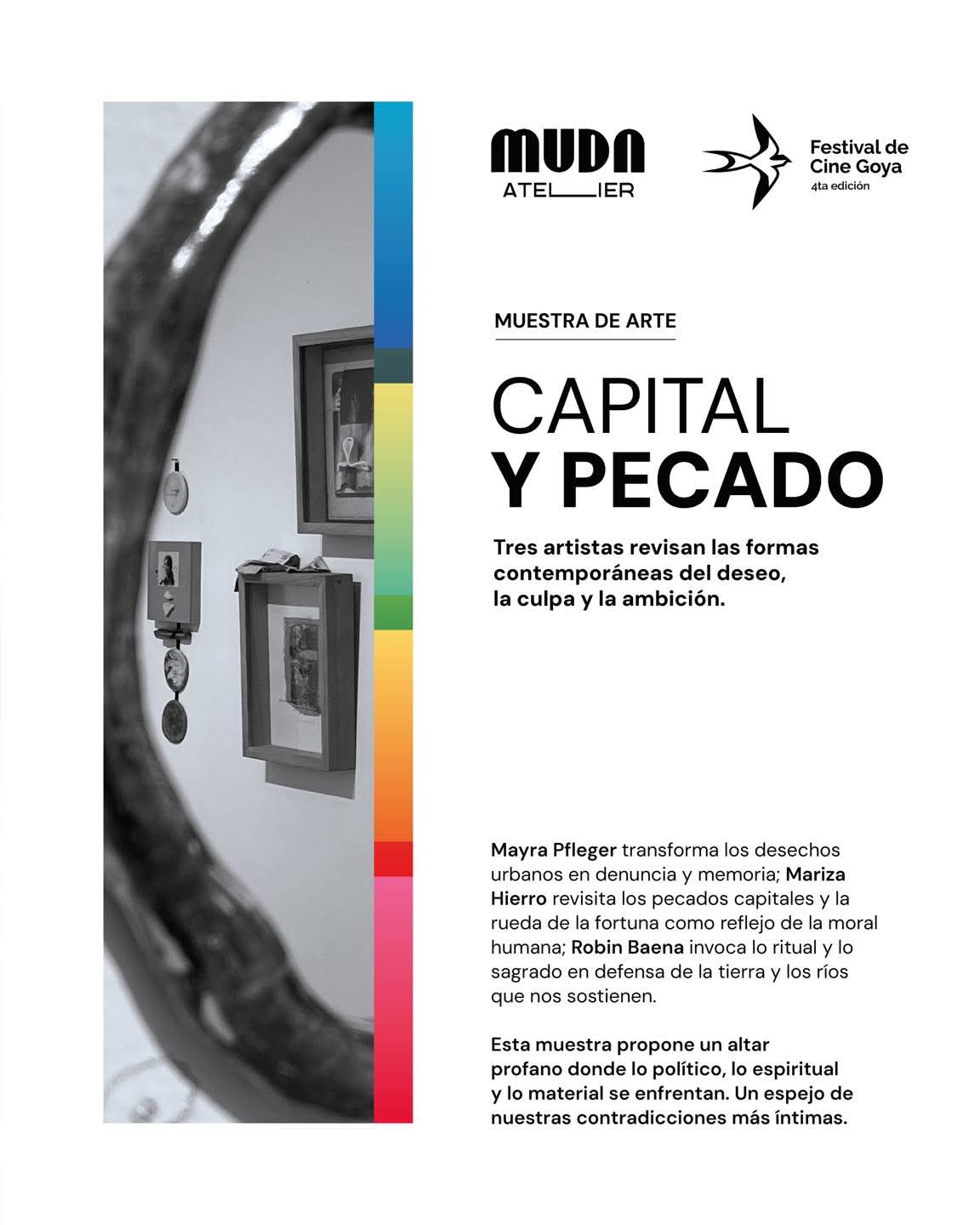 Bajo la consigna de unir miradas y sensibilidades, se presentará una muestra colaborativa que combina proyecciones de cortometrajes seleccionados con la exposición artística “Capital y pecado”, donde los artistas Mayra Pfleger (@maypfleger), Mariza Hierro (@mariza_hierro) y Robin Baena (@robin.baena) exploran, desde distintos lenguajes visuales, los vínculos entre el deseo, la culpa y la ambición.
