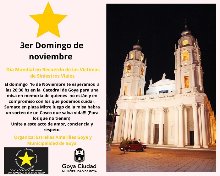 En el marco del día mundial en recuerdo de las víctimas de siniestros viales, que se conmemora cada tercer domingo de noviembre, la ciudad de Goya se une al homenaje global con una serie de actividades destinadas a recordar a quienes ya no están y a fortalecer el compromiso con la seguridad vial.