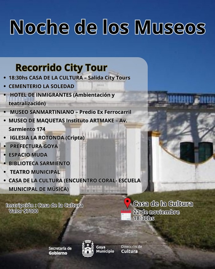 Manuel Zampar informó que “está sumado, pero no dentro del City Tour, el archivo privado de ‘Pilo’ Goitia”. Los visitantes también podrán disfrutar de la Casa Museo Devoto y el Museo de la Ciudad. “Será una noche a pura cultura y quienes no hicieron el city tour en años anteriores, incluso los que hicieron, se encontrarán con cosas que no conocían de la ciudad”, reseñó el director de Cultura.
