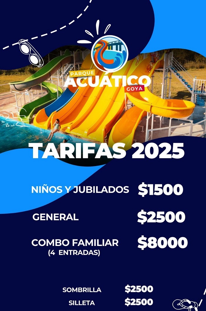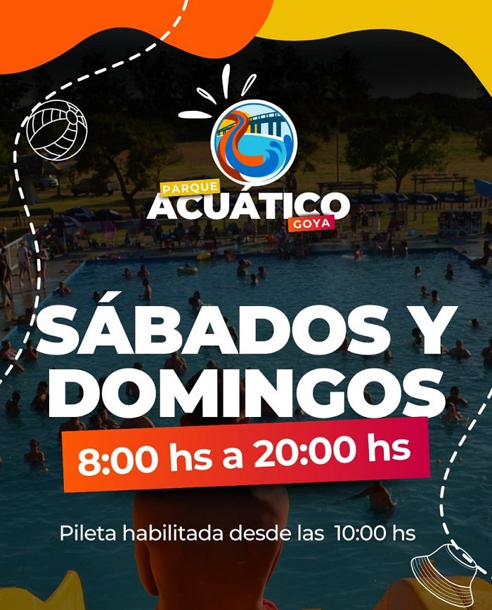 Al final de la entrevista mantenida en Radio Ciudad, el secretario de Turismo de la Municipalidad de Goya recordó que el viernes se habilita la temporada en el Parque Acuático Goya, de 14 a 20 horas, sábados y domingos de 8 a 20 horas”.