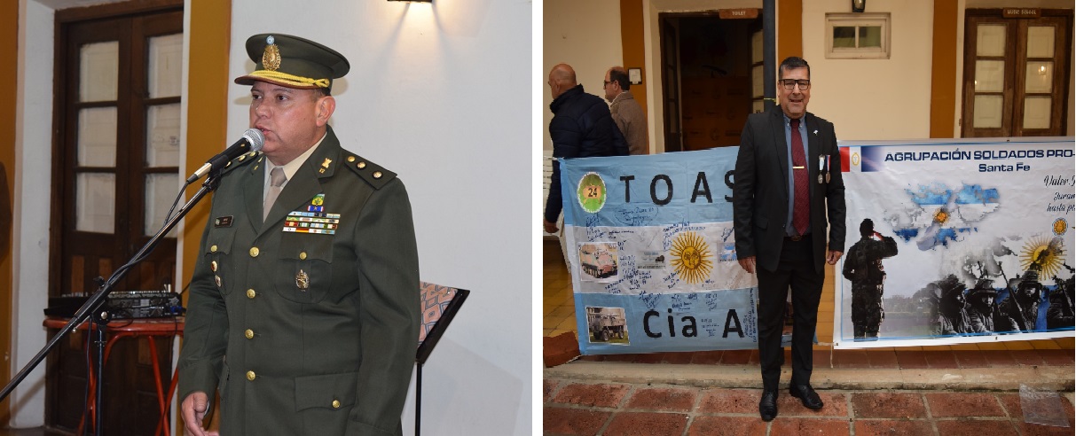 El Jefe del Batallón de Ingeniero de Monte 12 Teniente Coronel Sergio Ortiz, a solicitud de los presentes, expreso como un “gran gesto de mantener este valor de la camaradería, el compañerismo, por eso acepté acompañarlos cuando nos propusieron esta “juntada” que han realizado, por eso ofrecimos la Banda Militar, en nombre del Ejército Argentino, destacó el valor, el sacrificio puesto en esa llamado, los invito a seguir manteniendo vigente el recuerdo con esta manera de juntarse y compartir la vida.