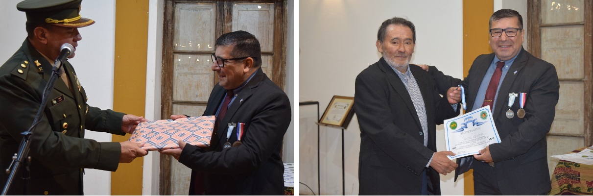 Seguidamente se procedió a reconocer a los ex soldados de nuestra ciudad, iniciando esa ceremonia la entrega de una plaqueta y medalla al actual Coronel Dr. Hugo Leyes, que al terminar su carrera universitaria de odontología prestó el servicio militar junto a esos ex soldados, para continuar con la misma modalidad al resto de los ex soldados presentes.