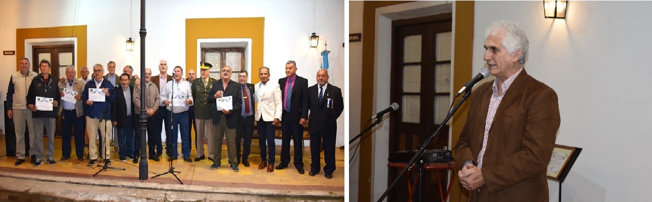 a pesar de los años transcurridos, 43 estamos con el Grupo que fue al sur, con nuestra agrupación decidimos hacer este homenaje, agradezco la presencia de autoridades, del Director de Cultura Manuel Zampar, del Teniente Coronel Sergio Ortiz, es un detalle que traemos pero entregado desde el corazón, para poner en valor el hecho de hacer real el juramento a nuestra bandera, para defender nuestra soberanía, el propósito es recordar porque el soldado muere cuando se lo olvida, esto es el reconocimiento a la comunidad por la cordialidad y acogida cuando cumplimos el deber del servicio militar.”