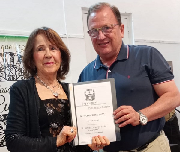 En la tarde noche del miércoles el ámbito elegido por la Dirección de Cultura y la SADE Goya, fue uno de los salones de la Casa de la Cultura para la presentación del Libro “Un Llamado al Amor y a la Esperanza” autoría de Alicia Árnica de Nardelli.