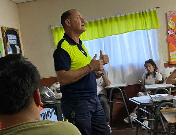 La jornada se realizó en el Colegio Secundario de la localidad, donde alumnos del EPJA participaron de actividades lúdicas y charlas sobre normas de conducción.