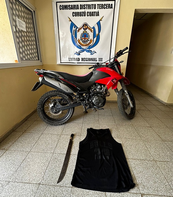 CURUZÚ CUATIA – Diligenciando una orden de allanamiento, la Policía halló una importante suma de dinero y secuestró prendas de vestir, un machete y una motocicleta.