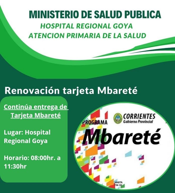 recibir a las beneficiarias del programa Tarjeta Mbarete. Dada la cantidad de personas que reciben el mencionado programa, la entrega continuará el jueves en el horario de 8 a 11,30 horas, en el local del Hospital Regional Goya.