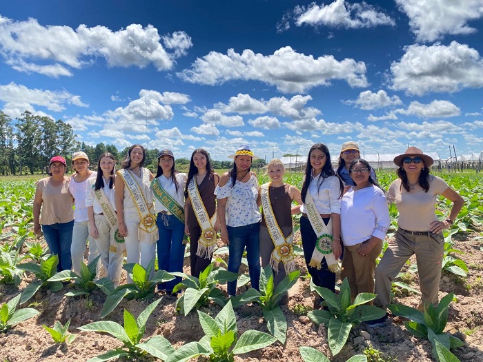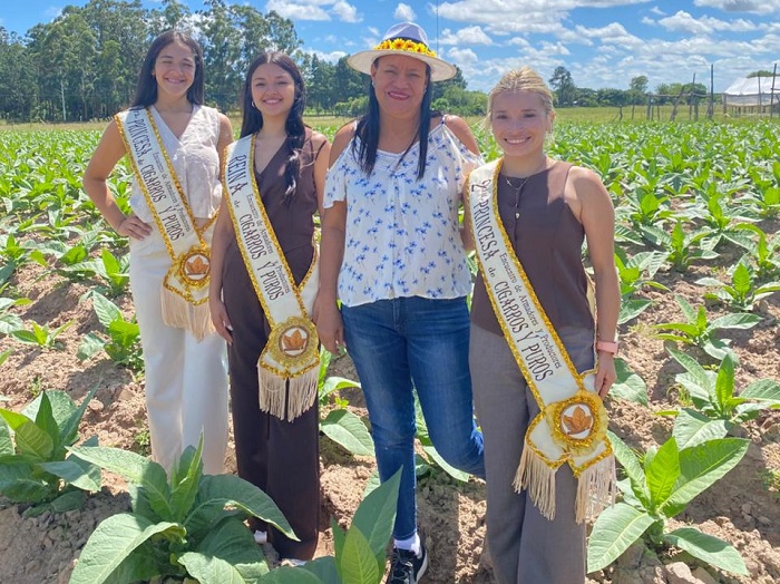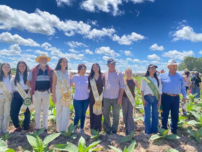 La flamante reina Ileana Alderete junto a las princesas 1ª Roció Huilen Ríos y 2ª Ana Elizabeth Zarate, acompañadas de una comitiva integrada por productores, las delegaciones de Salta y Chaco, integrantes de la Cooperativa Alma de Tabaco, la Secretaria de Producción, visitaron los cultivos de tabaco de los productores