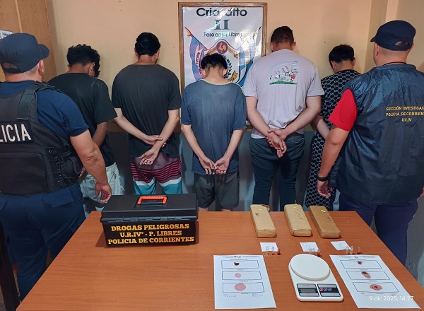 En horas del mediodía de hoy 09-12-25, efectivos policiales de la Comisaría de Distrito Segunda de Paso de los Libres, tras ser alertados, lograron la demora de cinco personas y el secuestro de tres “panes” de marihuana.