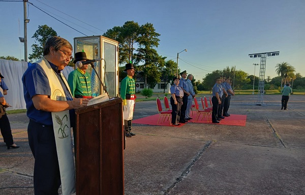 Durante el acto, el Capellán Auxiliar de la Institución Pbro. Mario Lezcano realizó una invocación religiosa y bendijo los atributos que luego fueron entregados durante el