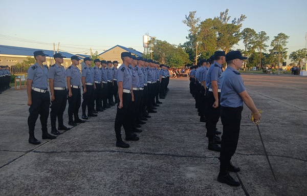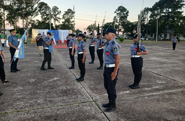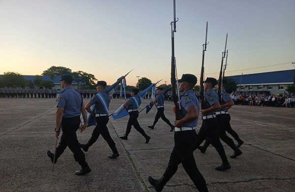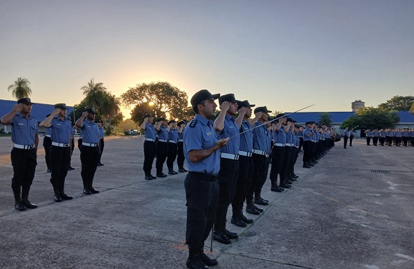 respectivos atributos de ascenso a los suboficiales cadetes seleccionados por orden de mérito, se produjo el cambio de abanderados y escoltas, donde el Subjefe de Policía Crio. Gral. Walter Darío Aceval, el director de Personal y Formación Policial Crio. Gral. Víctor García y el director de Instituto Policial Crio. Mayor Lic. Diego González, hicieron el traspaso correspondiente bajos las formalidades