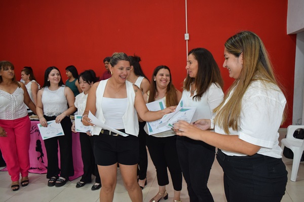 La ceremonia de entrega de los certificados de los talleres ofrecidos por el Grupo de Mujeres Emprendedoras, se realizó el martes 30 a las 20 horas, en el Salón de la Casa del Bicentenario, del acto junto al Secretario de Desarrollo Humano de la Municipalidad Julio Canteros, acompañaron la responsable del Grupo de emprendedoras Mariela Soto; los talleristas, egresados y sus familiares