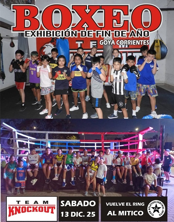 Mañana sábado 13 de diciembre desde las 20 horas se realizará una imperdible velada boxística en Club Central Goya. Se trata de una Exhibición de Fin de Año. El evento fue organizado por el Team Knockout.
